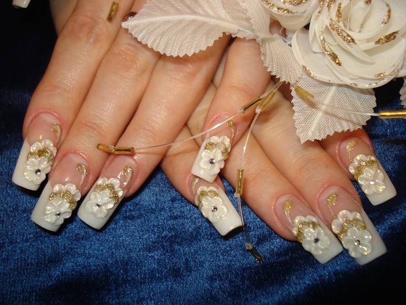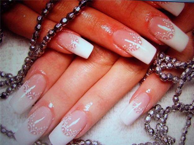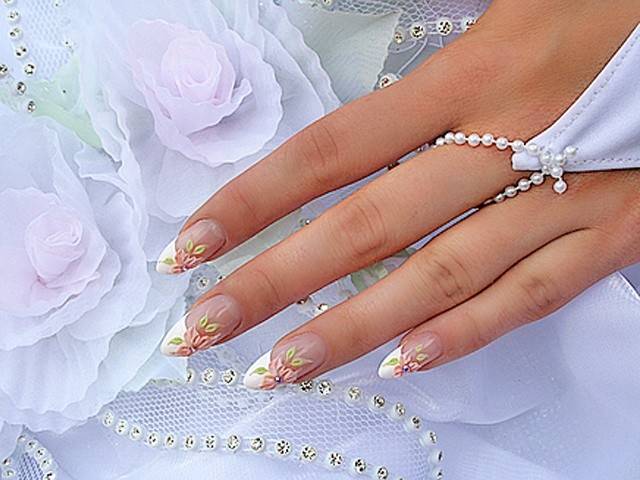 То, о чем следует помнить: Самый популярный маникюр для свадьбы Кривого Рога – французский или френч, он идеально подходит к белому платью, придавая образу утонченность. Классический вариант – основание ногтя розовое, а кончик белоснежный. К яркому экстравагантному платью выполните фан – френч, вместо розового оттенка, используя яркий цвет лака. Хорошо смотрится дизайн ногтей в объеме, но он недолговечен, лепка держится максимум три дня, поэтому делать его нужно накануне свадьбы. Если у вас тонкие и ломкие ногти, заранее проведите процедуру наращивания. Перед торжеством проведете коррекцию, за это время вы успеете привыкнуть к форме и длине ногтей. Допустим, вы выбрали замысловатый рисунок, тогда вместе с мастером устройте репетицию, пробный вариант, на самом деле рисунок может оказаться не таким шикарным, как кажется. Профессионалы рекомендуют для свадебного маникюра использовать лак пастельных тонов. Лишь темнокожим девушкам подойдут яркие оттенки. Для завершения и создания единого образа можно использовать нейл – арт. В дизайне ногтей могут присутствовать стразы, кружева, хрустальная пудра и другие украшения. Если волосы украшены цветами, создайте и на ногтях флористическую композицию. С помощью акрила мастера создают плоскостной или аквариумный дизайн ногтей, украшают ноготки натуральными сухими цветами, росписью или специальными наклейками. Форма ваших ногтей может быть любой, важно чтобы руки были ухожены, а маникюр подходил к общему стилю. На свадьбу не стоит делать слишком длинные ногти, на конкурсах их можно сломать, что будет очень неприятно. Опубликовано 27-05-2013, 21:26 Комментарии