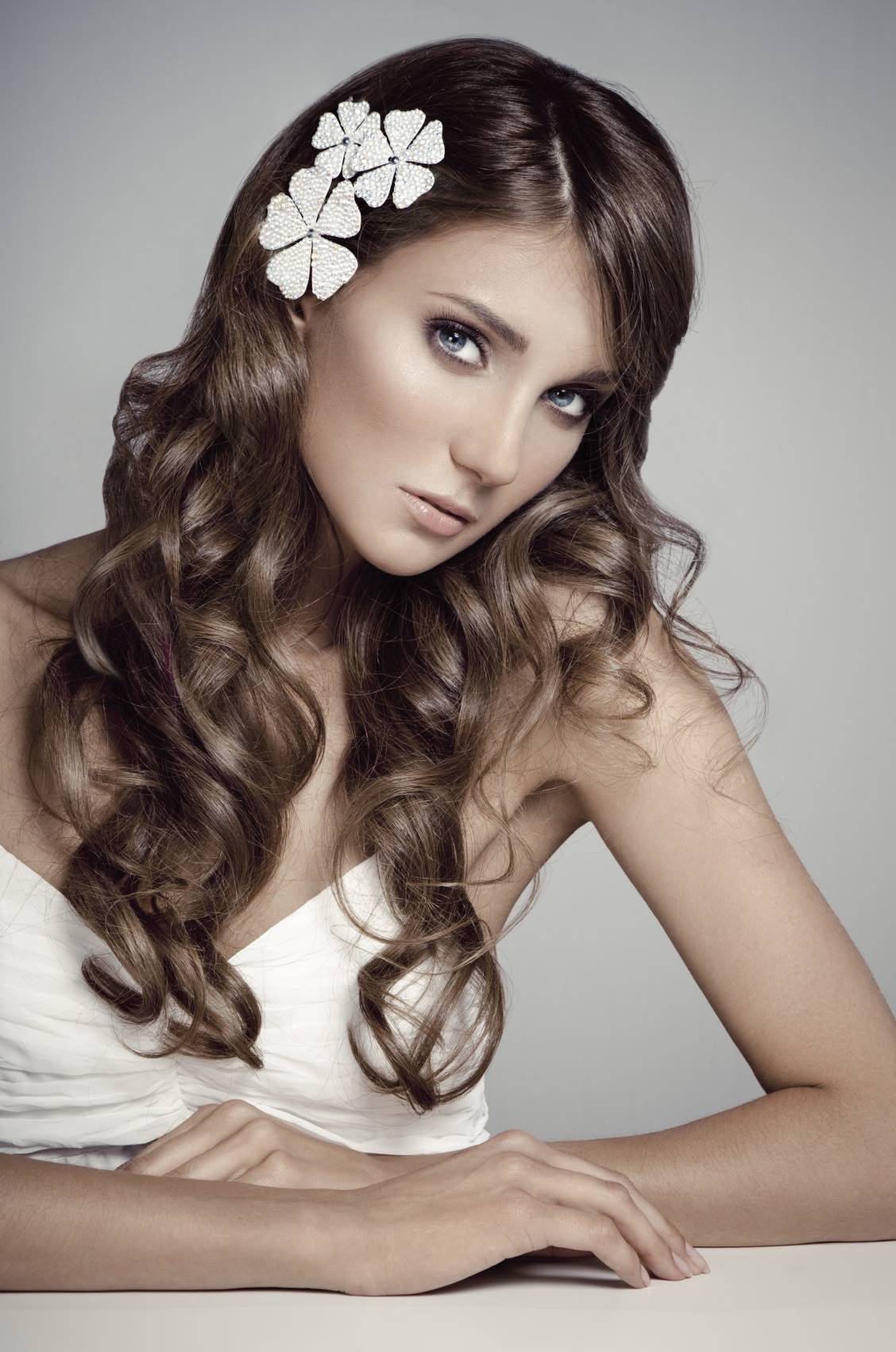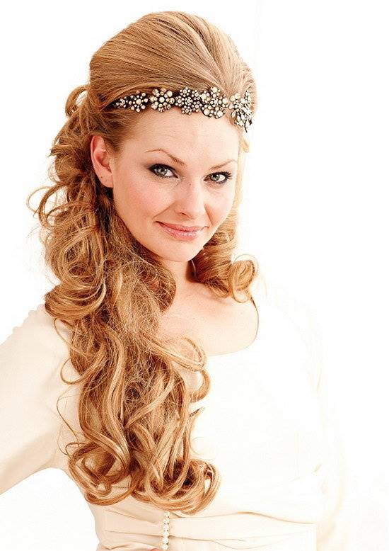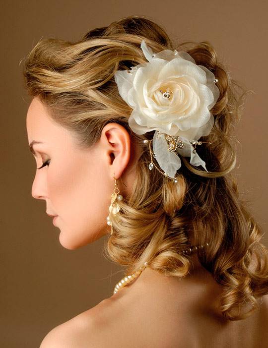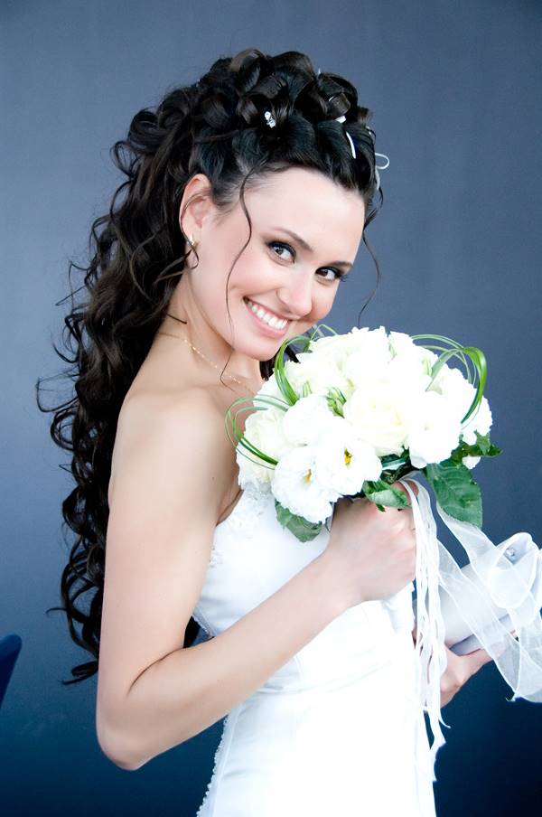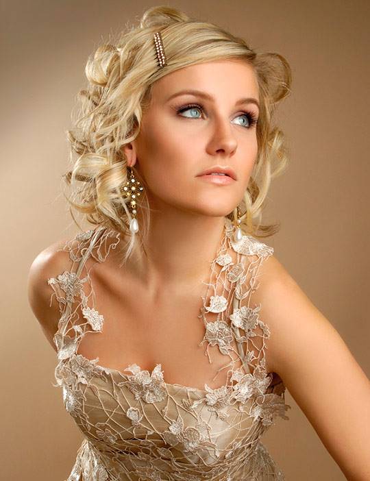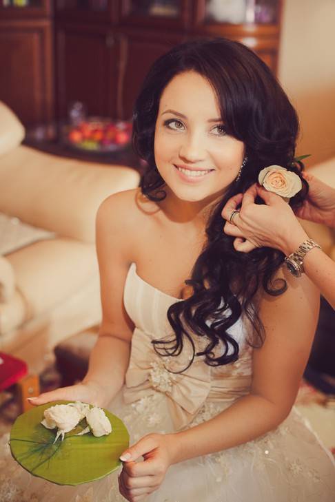 Если вариантов причесок на гладкие волосы существует великое множество, и главным образом их накручивают, то вьющиеся волосы значительно упрощают задачу. Но часто бывает, что волосы не имеют подходящей формы и они не послушны. Чтобы прическа получилась идеальной, о волосах нужно позаботиться заранее. Тщательно вымойте голову, высушите ее естественным путем. С помощью утюжка вытяните локоны, а лишь затем завейте их на бигуди. Из кудрявых волос можно создать оригинальную косу, необычное плетение или просто оставить распущенными. Если у вас платье с открытой спиной, то перекиньте локоны на плечо, чтобы продемонстрировать соблазнительную спину. Вьющиеся волосы можно украсить живыми цветами, декоративными заколками, шпильками, диадемами и другими аксессуарами.