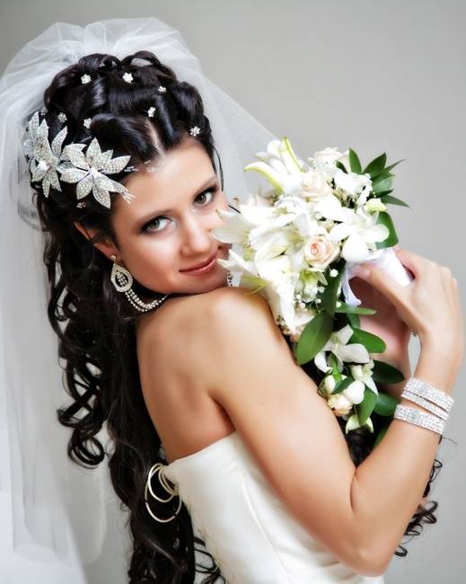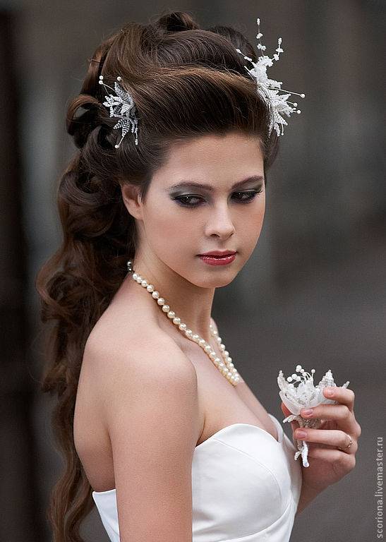 Шикарно смотрятся кудри, декорированные жемчужной нитью. Не очень красиво смотрятся короткие вьющиеся волосы. Хорошо если они длиной хотя бы до плеч. Прекрасно выглядят непослушные кудряшки приглаженные обручем для волос или ободком. Юным невестам к лицу узел, направленный вверх каскадом беспорядочных кудрей. Прическа придает нотку озорства и придется по вкусу для невест бунтарок, да и гости придут в восторг от образа хулиганки. Опубликовано 31-07-2013, 20:56 Комментарии