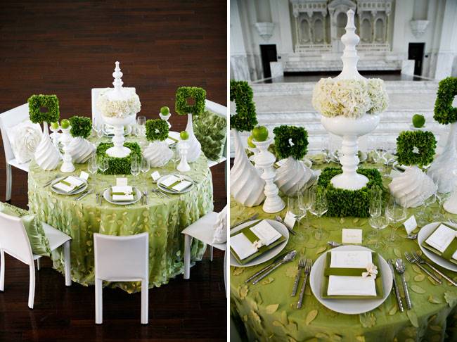 Винные и сервировочные столики украшают обычно своими руками мини композициями, в состав которых, входят овощи, фрукты, корзины. Оригинально выглядят салфетки, вдетые в цветочные кольца. Изысканны свечи, можно поместить плавающую свечу в низкую креманку, туда же добавить распустившуюся розу. Существует множество вариантов расстановки столов на свадьбе. Столы, расположенные в форме букв «Т» удобны, если торжество проходит в кругу близких людей. Жених с невестой, родители и свидетели садятся в торце стола, а гости будут сидеть лицом друг к другу. Если гостей приглашено очень много, расставьте столы наподобие буквы «Ш». В центре размещаются молодожены, свидетели и родители. Среднее количество гостей вместят столы буквой «П». Малознакомым людям будет легче общаться сидя лицом друг к другу. Форма расстановки столов буквой «Г» актуальна при большом количестве гостей и маленьком помещении. Фуршет предполагает, что длинные столы будут установлены вдоль стен, а гости могут свободно перемещаться между них, накладывая, то, что пожелают. Английская расстановка предполагает отдельный столик для жениха и невесты. Гостей рассаживают по восемь человек за небольшие столы. Как бы ни были расположены столы, позаботьтесь о карточках с именами приглашенных. Чтобы не было путаницы, поставьте их на тарелки. Или же, оформите места гостей тканью. Проследите за тем, чтобы скатерти и столовые приборы были одинаковые. Салфетки и посуда могут быть как в тон, так и контрастными. Столы украшают лентами, бантами, другим декором, соответственно стилистике всего помещения. Опубликовано 27-05-2013, 21:35 Комментарии