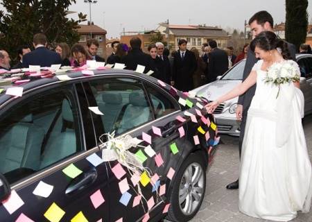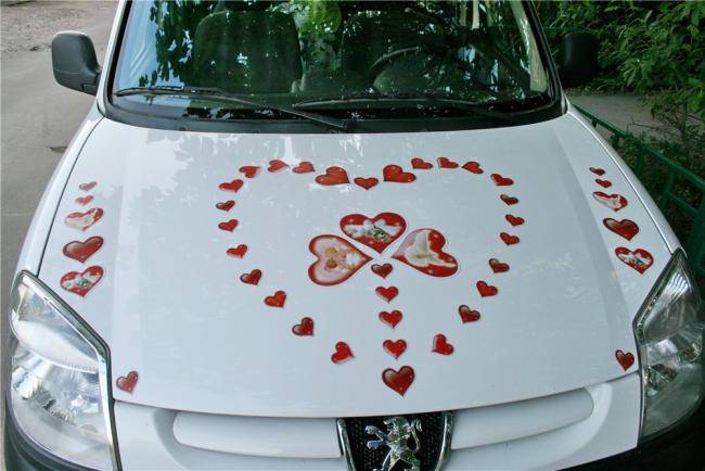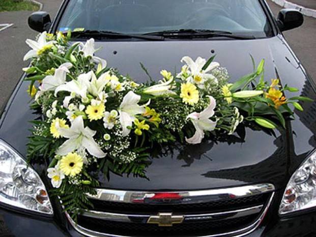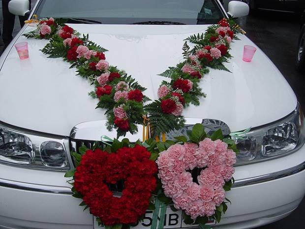 Украшение автомобиля цветами Самое распространенное декорирование автомобилей цветочными композициями. Модно украшать авто живыми цветами. Но это лучше доверить профессионалам, ведь цветы необходимо подготовить, чтобы во время поездки они не теряли лепестки и не увядали. Декорирование искусственными цветами допустимо и самостоятельно, важно найти свой неповторимый стиль. Цветочные гирлянды располагают вдоль лобового стекла и через капот по диагонали, по всему кузову и по стеклу до крыши. Хорошо смотрится букет цветов, закрепленный на автомобильной решетке. Озорно выглядят цветочки, прикрепленные к «дворникам». Украшение - сердце, основной декор свадебного автомобиля. Можно закрепить на капоте или багажнике большое сердце из искусственных цветов. Украшение автомобиля лентами Лаконично и изящно украсить автомобиль тканью или лентами. Сеткой украшают любую часть авто, а если прикрепить на крышу тюль, дополнить диадемой и цветами, то это станет похоже на фату. Классическое оформление автомобиля лентами буквой V, от радиаторной решетки к зеркалам. Цвет ленты может красным, розовым, белым или любым другим, соответственно общей стилистике свадьбы. В месте расхождения лучей крепят цветы или куклу. Красиво смотрится вуаль, натянутая на капоте по диагонали с оборкой к лобовому стеклу, концы материала закрепите под крышкой капота. Выбирайте контрастный цвет ткани, для светлых автомобилей - яркие оттенки, для темных – пастельные. Если бюджет ограничен, украсьте ручки дверей и зеркала небольшими бантами. Украшение авто шарами и фигурками В настоящее время украшение авто воздушным шарами не так популярно, как раньше, шарики лопаются и отрываются. Если воздушные шары необходимы, накачайте их гелием и прикрепите на крышу машины. Невозможно представить свадебный автомобиль без куколок и милых безделушек: колец, голубей, плюшевых мишек и сердечек. Плюшевые мишки хит - свадебного торжества, их одевают как жениха и невесту, возможен идентичный наряд молодоженов. Украшение табличками и стикерами Новое в украшении авто к свадьбе – это стикеры и таблички. Они могут быть любого размера, различной формы, с пожеланиями, именами новобрачных или просто надписью «Молодожены». Опубликовано 27-05-2013, 21:39 Комментарии