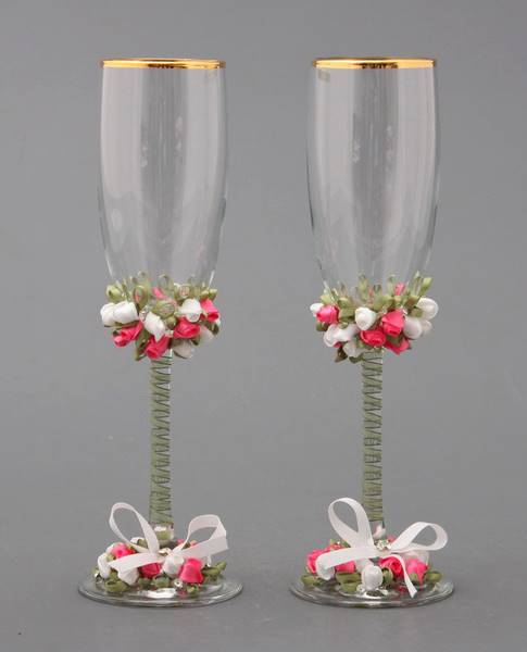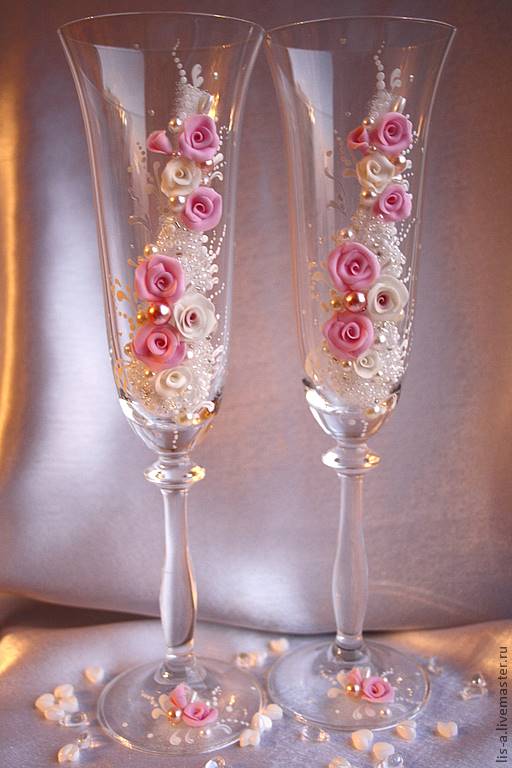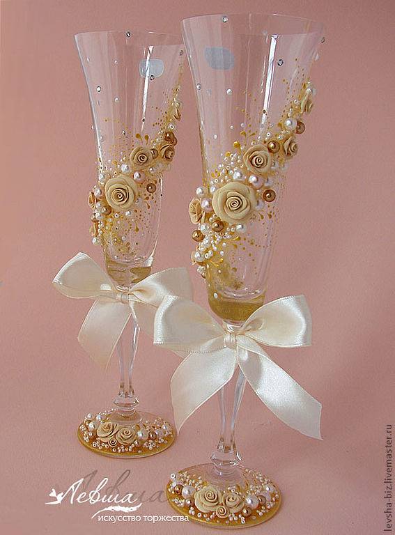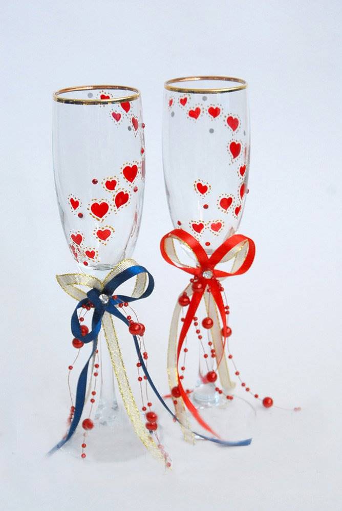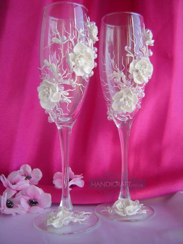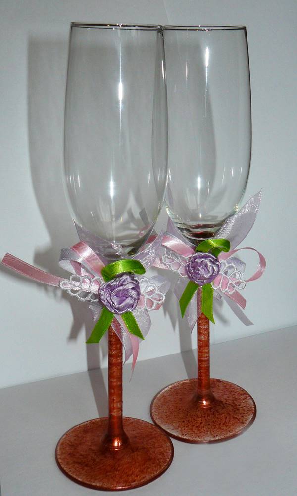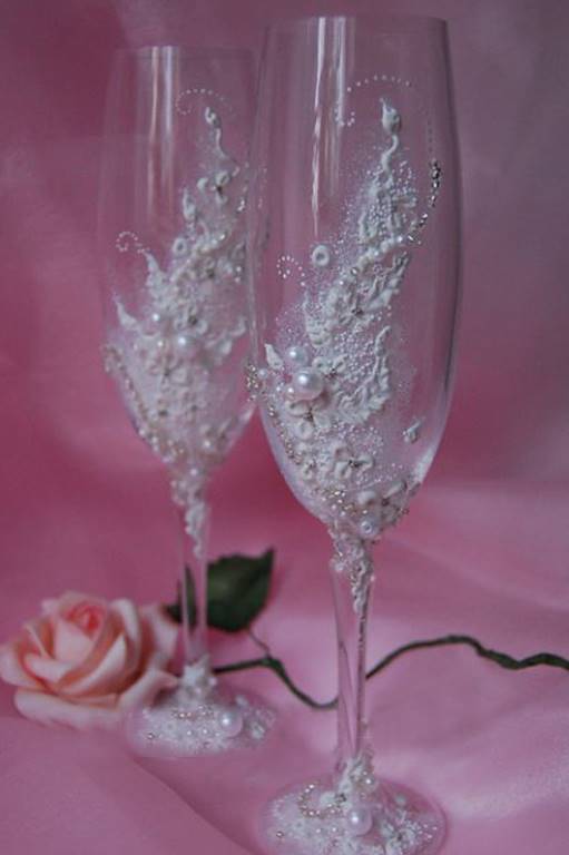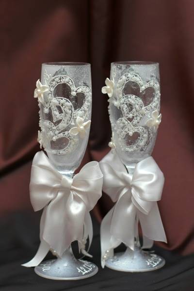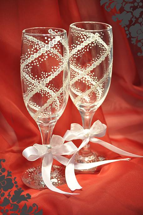 Разбить бокалы можно в любое удобное время, главное, чтобы это было сделано после того, как молодожены уже выпили из них по глотку шампанского. Отдайте предпочтение хрупкому материалу, тогда осколков получится больше. Дублирующие бокалы для банкета должны быть прочными. Традиционно они должны храниться в семье всю жизнь. В салонах Кривого Рога можно найти свадебные бокалы на любой вкус, а можно создать уникальные шедевры своими руками. Для украшения используют бисер, жемчуг, кружева, стразы, ленты и цветы. Декор лучше крепить специальным пистолетом, так как клей может оставлять некрасивые следы. Так же можно оформить бокалы росписью или гравировкой. Опубликовано 27-05-2013, 21:42 Комментарии