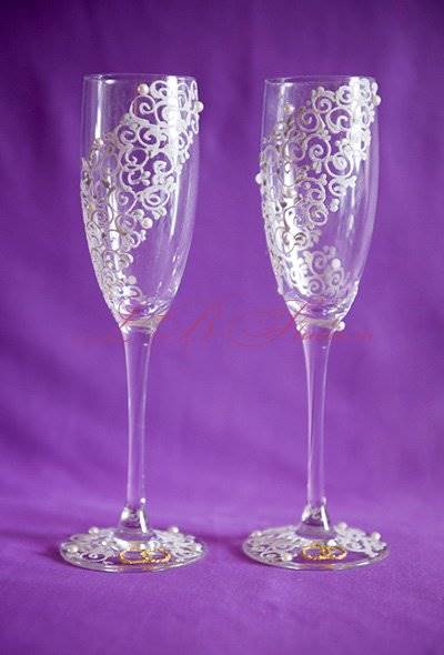 Бокалы для молодоженов особый свадебный аксессуар, который расписывают, а впоследствии разбивают. Эта традиция является частью свадьбы, поэтому бокалы обязательно должны быть необычными. Традиция разбивать на свадьбе бокалы пришла к нам из далекого прошлого. У разных народов свои варианты, но смысл везде одинаков – бить посуду к счастью. Считается, что звон стекла способен отогнать злых духов, а звон хрусталя вообще наделен магическими свойствами. Обычно, бокалы бьют после того, как новобрачных объявили мужем и женой. Осколки - это символ счастливой жизни, чем их больше, тем дольше проживет пара. Бокалы не разбились? Не стоит расстраиваться, свидетель ногой разбивает посуду и веселье продолжается.
