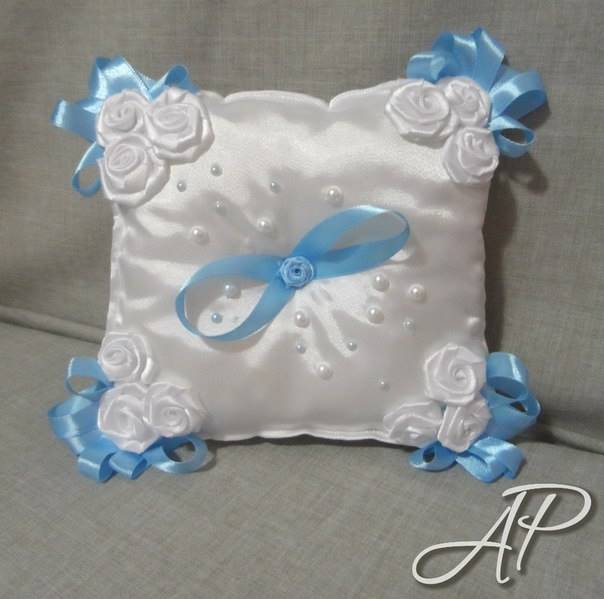 Здравствуйте, меня зовут Алена. Я мастер свадебных аксессуаров ручной работы в г. Кривой Рог, и в данной статье, предлагаю вам, познакомится с одним из аксессуаров, который необходим во время проведения свадебного торжества. Традиционно, при регистрации брака, обручальные кольца преподносят молодым на блюдце или подушечке. В наше время все чаше и чаше предпочтение отдают последним. Ведь подушечка более нарядна, оригинальна и имеет очень много вариантов исполнения. Я продаю как уже готовые работы, их вы можете увидеть на фото, и выполняю изделия под заказ. Чем хороши мои работы? – Мы с вами вместе можем подобрать аксессуары, соответствующие именно вашей свадьбе, именно вашему стилю. Также, кроме оригинальности, красоты и качества, я предлагаю довольно низкие цены. Средняя стоимость подушечки для колец – 50грн. Обращайтесь, буду рада дополнить вашу свадьбу красивыми свадебными аксессуарами.