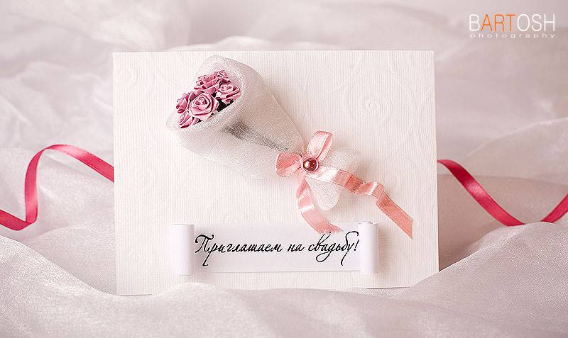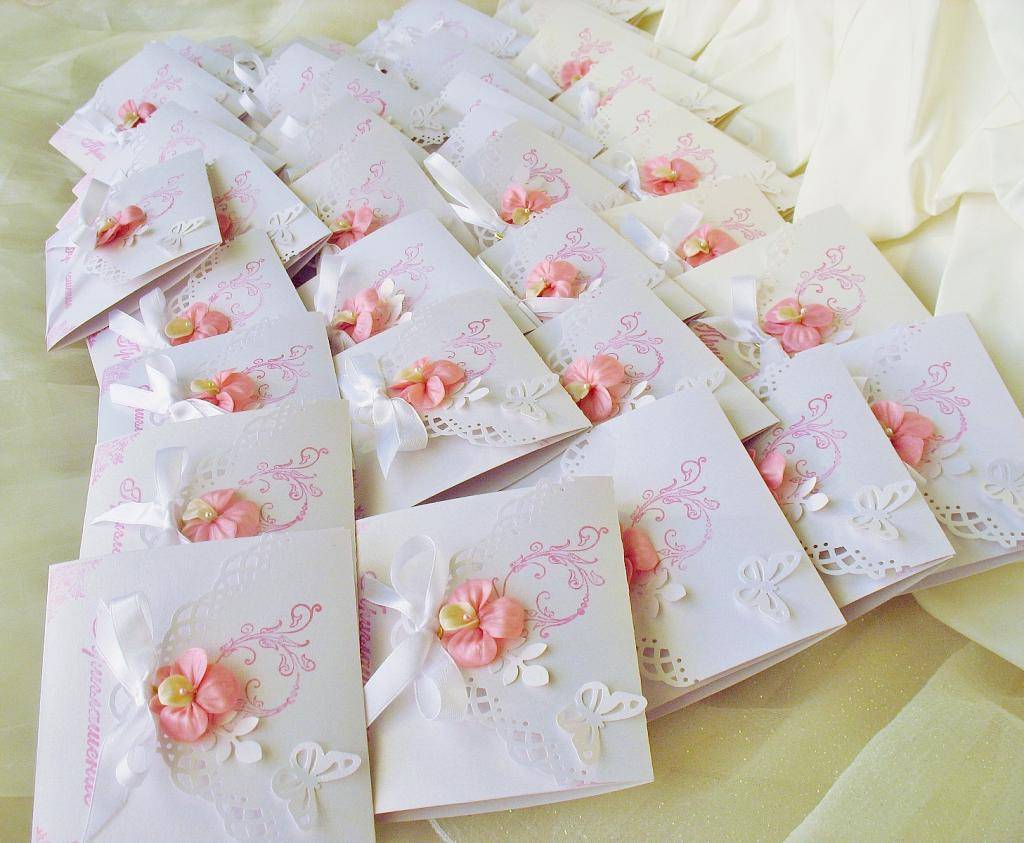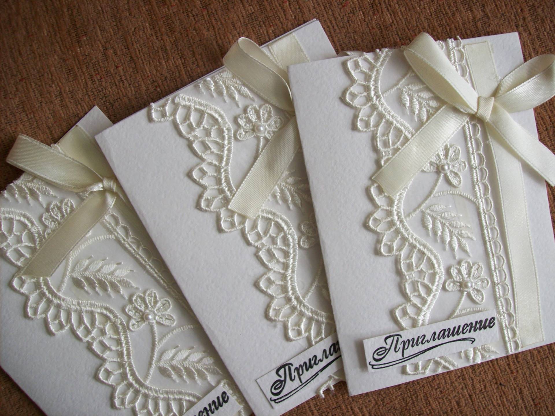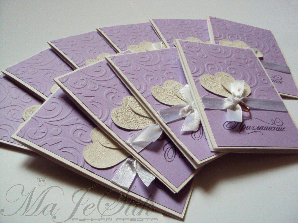 заказать пригласительные ручной работы у мастера и вам создадут уникальный шедевр из бумаги, дорогой кожи, красивой ткани и тому подобное. свадебной открытки может быть лукошком с сюрпризом, старинным папирусом, бутылкой с запиской, ценной бандеролью или экзотическим фруктом. Заказать или приобрести готовые пригласительные открытки можно тут http://www.astracards.ua