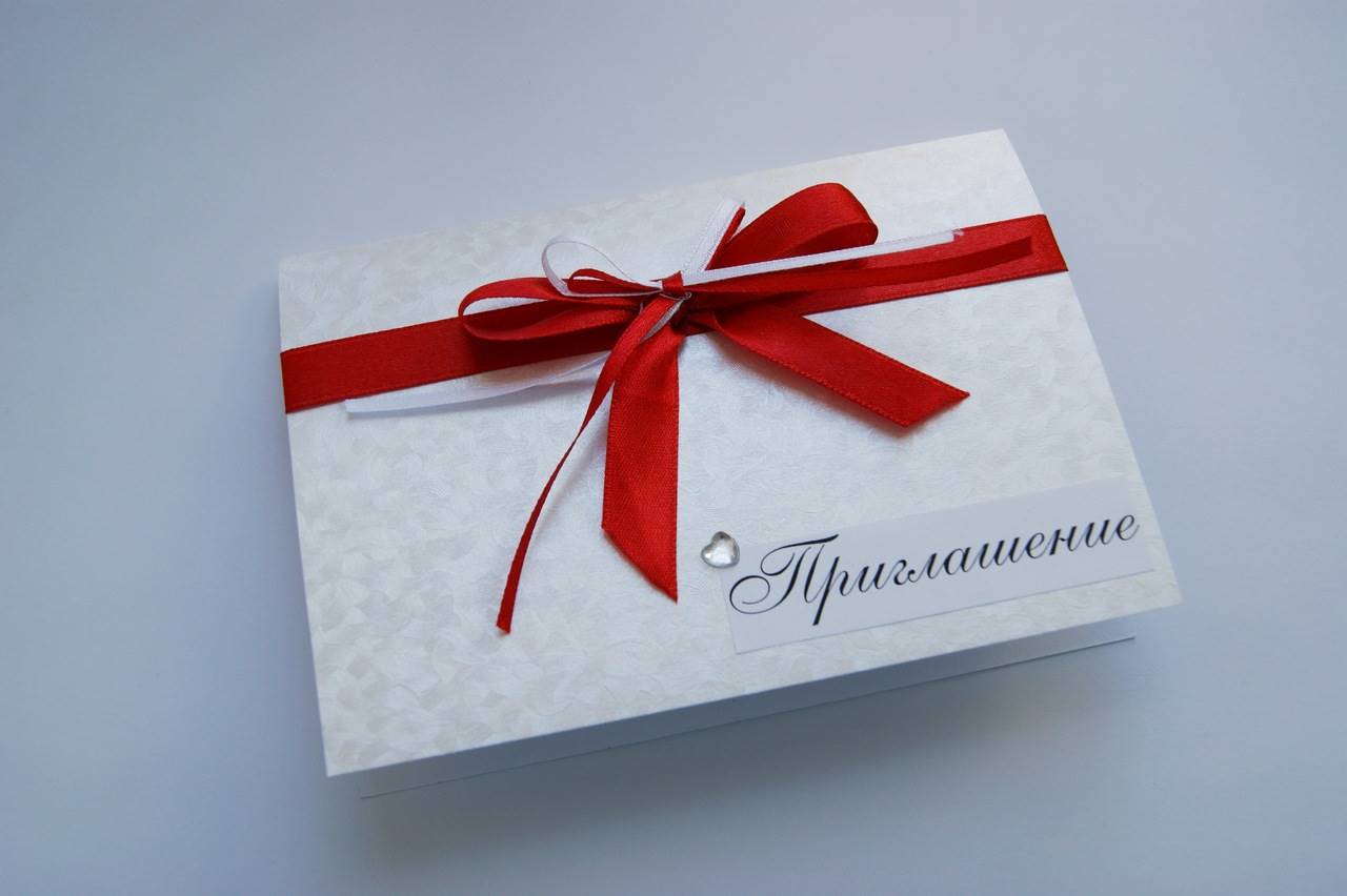 Пригласительные на свадьбу Категория: Свадебные аксессуары / Свадебные мелочи Пригласительные открытки на свадьбу – одно из важных дел, которое нужно сделать перед свадьбой. Приглашение - визитная карточка мероприятия. Сегодня, приглашение на торжество может быть отправлено электронной или обычной почтой, вручено лично в руки или положено в почтовый ящик. Форма пригласительного билета так же может быть любой, самые распространенные открытки в форме сердца, с готовым текстом. Можно сделать свадебные пригласительные своими руками или же