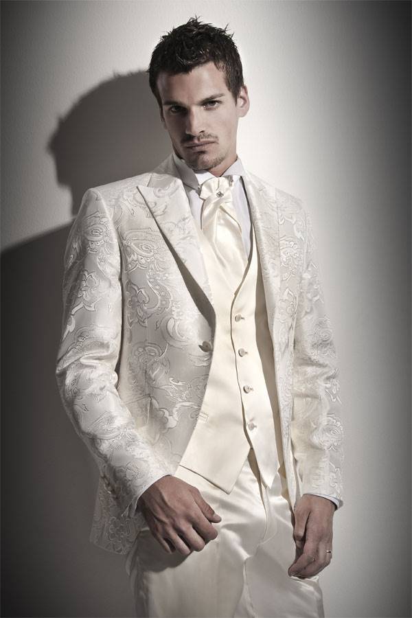 Мужские свадебные костюмы Категория: Мужские костюмы Обычно, к свадьбе особенно активно готовится невеста. Но если девушка красива как принцесса, у нее обязательно должен быть принц. К выбору свадебного костюма для мужчины следует подойти так же с должным вниманием. Свадьба – это торжество, позвольте себе более нарядный костюм, чем обычно. Несомненно, костюм жениха по цвету и по значению должен соответствовать платью невесты. К классическому пышному платью подойдет фрак для жениха, смокинг и галстук – бабочка. Невеста в платье со шлейфом или в современной короткой модели, то мужчине хорошо приобрести классический костюм или смокинг. Экстравагантные свадьбы, когда жених и невеста наряжаются в карнавальные костюмы, костюмы водолазов или пиратов, отдельная тема, но обсуждение нарядов должно проходить совместно.