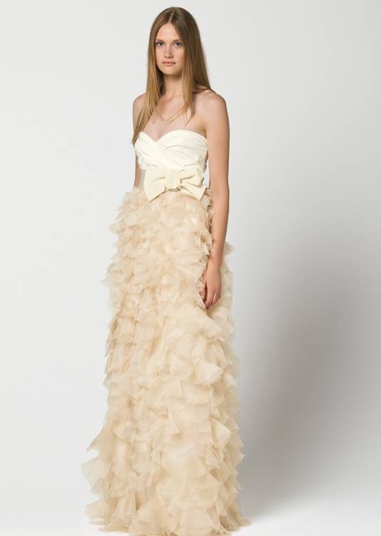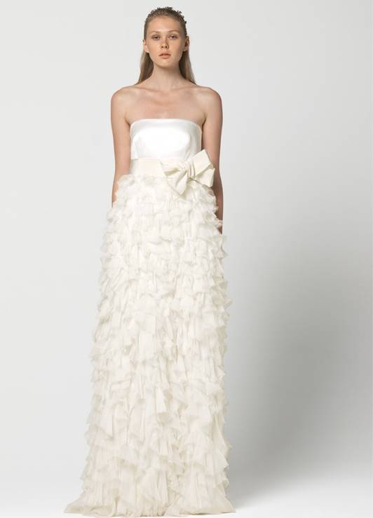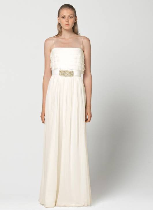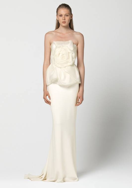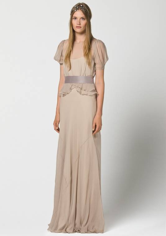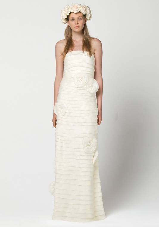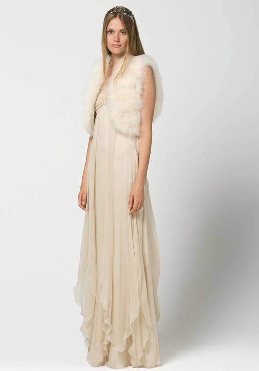 Платья в стиле минимализм способны превратить невест в нимф, воплощение невинности и чистоты, в героинь средневековых романов или в прекрасных принцесс. В коллекции присутствуют строгие силуэты, великолепные ткани, драпировки, мех и цветы. Ювелирных украшений минимум. Модели платьев поражают разнообразием: современные платья до колена, наряды «в пол». Зимние коллекции характеризует аленький лиф, талия завышена, силуэт юбки расширяющийся книзу. Прозрачный слой поверх основы, цветочные аппликации и бантики придают фигуре воздушную женственность и стройность.