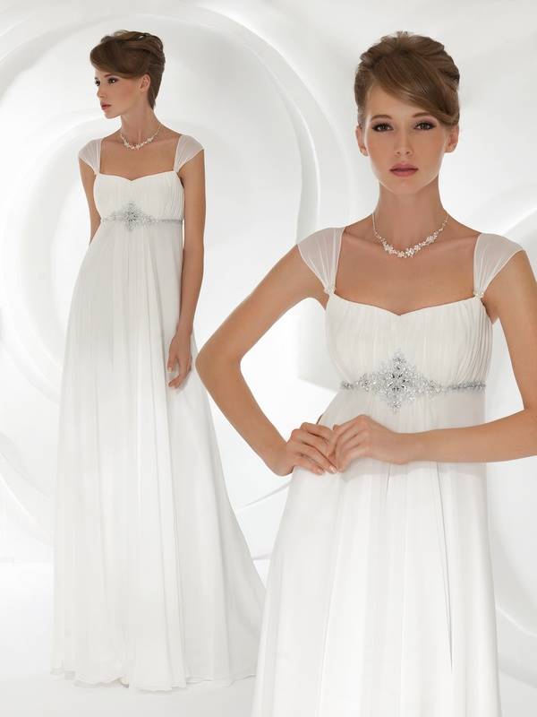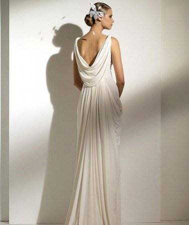 Платье может иметь рукав различной длины, наиболее интересны рукава расширенные к низу, они могут быть прозрачными или выполненными из той же ткани. К платью без бретелей отлично подойдет болеро. Помимо спокойных тонов и пастельных оттенков, греческие свадебные платья выполнены в черных и красных цветовых решениях. Преимущества платья в этом стиле в их комфортности, легкости и удобстве. Вертикальные складки визуально вытягивают фигуру, что актуально для невысоких невест. Худенькая девушка в таком платье будет выглядеть более объемно, а женщина с формами покажется стройнее. С помощью более плотной ткани можно скрыть выступающий животик, а шифон наоборот подчеркнет несовершенство. Широкое V – образное декольте откроет нежную шею, подчеркнет красоту небольшой аккуратной груди. Полные руки и угловатые плечи завуалирует роскошная шаль и утонченные перчатки. Завышенная талия скроет изъяны ягодиц, бедер и живота. Свадебное греческое платье универсально и практично, элегантно и романтично. Эксклюзивность платья заключается в его декоре. Драпировка юбки до пола укажет на аристократический вкус невесты, атласная лента или бабочка на талии подчеркнет романтичность, а открытая спина нежную сексуальность. Шик и красоту платьям в греческом стиле обеспечивает дорогая ткань. Как правило, платье выполнено из шифона, кружева, атласа, шелка или гипюра. Сшить на заказ вы можете платье любого оттенка, но классическими считаются белый, молочный, «шампань», ванильный или цвет слоновой кости. Свадебное платье Греции – самый обольстительный и женственный наряд. Опубликовано 21-12-2013, 22:57 Комментарии