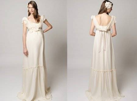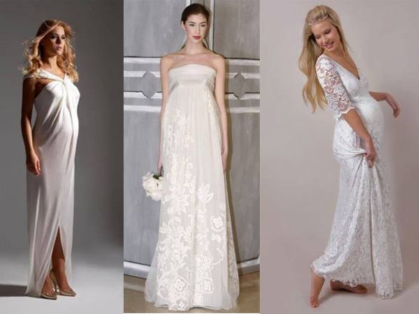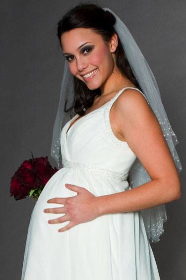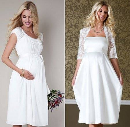 Скоро свадьба, но в отличие от всех остальных, вы самая счастливая невеста, потому что вы беременны. Не стоит беспокоиться по поводу свадебного наряда, подобрать платье можно и для уже округлившегося животика. В первую очередь обратите внимание, на декоративные делали в области талии, пуговицы, кружева и рюши несовместимы с округлыми формами. Не нагружайте себя излишними аксессуарами. Чувство меры и стиля подчеркнет кулон с дорогим камнем или нитка жемчуга. Осмотрите себя критическим взглядом. Стройные ноги можно открыть, надев короткое платье, красивые плечи подчеркнет открытый топ, покажите свои достоинства.