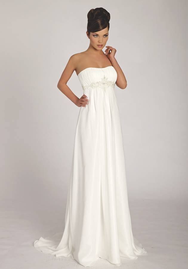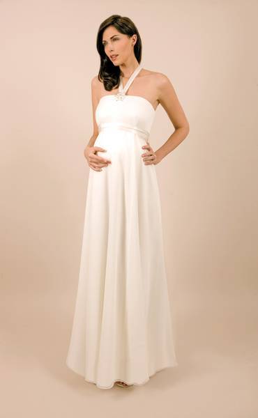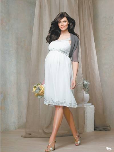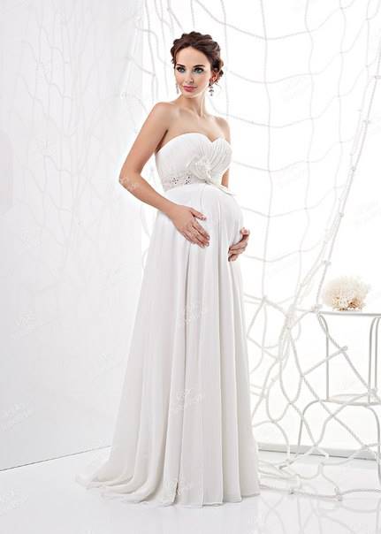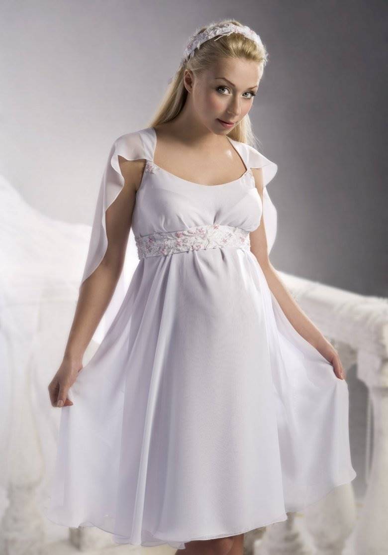 Свадебное платье для беременных Категория: Свадебные платья Скоро свадьба, но в отличие от всех остальных, вы самая счастливая невеста, потому что вы беременны. Не стоит беспокоиться по поводу свадебного наряда, подобрать платье можно и для уже округлившегося животика. В первую очередь обратите внимание, на декоративные делали в области талии, пуговицы, кружева и рюши несовместимы с округлыми формами. Не нагружайте себя излишними аксессуарами. Чувство меры и стиля подчеркнет кулон с дорогим камнем или нитка жемчуга. Осмотрите себя критическим взглядом. Стройные ноги можно открыть, надев короткое платье, красивые плечи подчеркнет открытый топ, покажите свои достоинства.