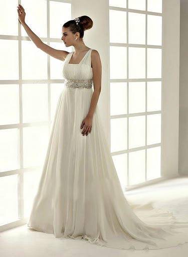 Рассмотрите вариант платья, где талия приподнята и начинается от уровня груди, такой фасон создаст образ сексуальной невинности. Не выбирайте платье облегающее фигуру. Ваша основная задача отвлечь внимание от талии. В этом поможет большой вырез V – образной формы, простой крой рукава, подчеркните грудь специальным бюстгальтером. Избегайте тяжелых тканей, крепа, джерси, вельвета. Предпочтительны такие материалы как шелк, атлас, шифон, в матовой цветовой гамме. Самая популярная модель среди беременных, платье в стиле ампир, с отрезной характерной линией груди. Крой наряда нежен и изыскан, верх платья декорирован тонким кружевом или бантом. Фасон комфортен и удобен за счет свободной линии кроя, движение беременной невесты не будет стеснено. Изделие со шнуровкой вызывает противоречивые чувства. Утягивать живот корсетом может быть опасно, так что лучше отдать предпочтение комфорту, а не восхитительному внешнему виду. Невестам, которые хотят подчеркнуть свое положение, идеально подойдет вариант в стиле «рыбка». Платье расширяется вниз от уровня колен. Традиционные платья с пышными многослойными юбками восхищают, но если вы предпочли объем, тогда откажитесь от других акцентов в наряде, которые привлекают внимание. На подиумах часто встречаются платья для беременных в пастельной или песочной гамме, нередки розовые тона, фисташковые оттенки, цвет слоновой кости. Подобные оттенки успокаивают и гармонизируют женщину. На модных показах, представлены линейки свадебных платьев для дам в положении. Некоторые наряды просты, новизны им придает обилие текстиля, фигурируют короткие платья, корсеты, стиль ампир и многое другое. Будущая мама, без всякого сомнения, подберет себе очаровательный подвенечный наряд, затмевая всех собственных блеском и привлекательностью. Опубликовано 21-12-2013, 22:57 Комментарии