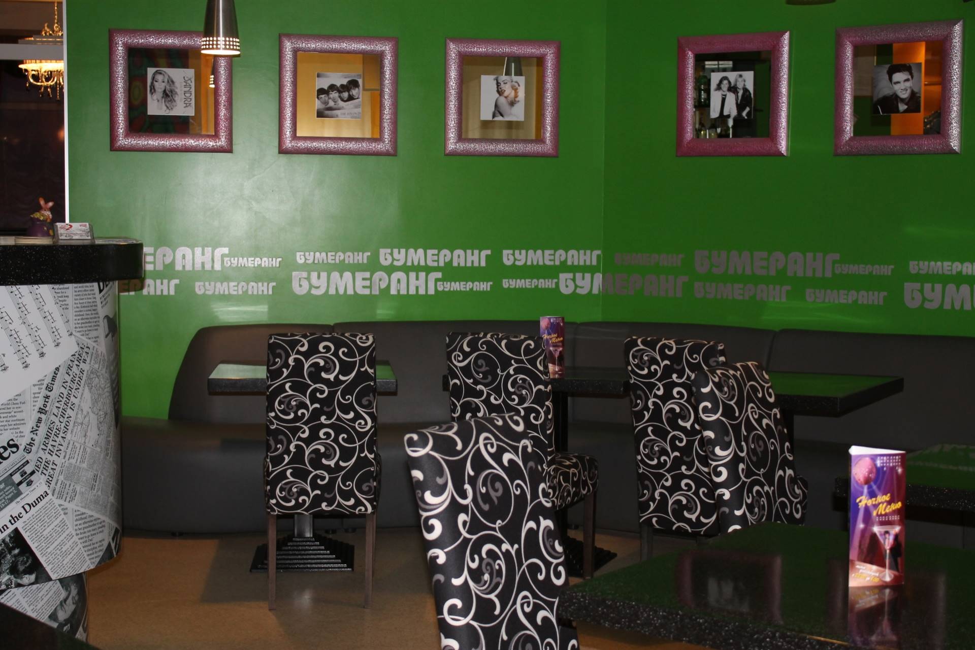 Кафе Бумеранг Категория: Хотите организовать идеальное торжество? Звоните и приходите в кафе «Бумеранг»! У нас индивидуальный подход, самые интересные идеи, необыкновенное оформление торжества и САМЫЕ ВЫГОДНЫЕ ПРЕДЛОЖЕНИЯ ПО ЦЕНАМ! В кафе «Бумеранг» Вас всегда ожидает превосходная кухня, первоклассное обслуживание, уютная обстановка, красивые люди, хорошая музыка и отличное настроение. В нашем меню посетители и гости кафе могут найти множество различных блюд на любой вкус, уникальную коктейльную карту и многое другое, в том числе и детское меню. Притягательный интерьер, уютная обстановка делают Ваше торжество в кафе «Бумеранг» по-настоящему незабываемым!