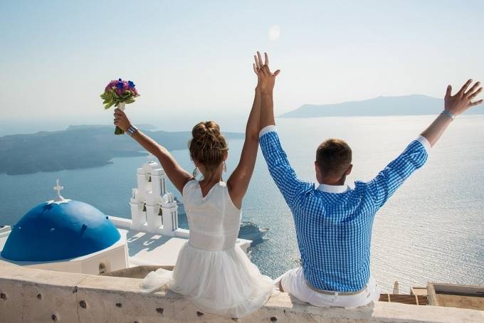 Свадьба на островах Греции Категория: Полезные советы Всем влюбленным парам хочется, чтобы их церемония бракосочетания была самой красивой, самой неповторимой, незабываемой, воспоминания о которой будут греть душу всю долгую семейную жизнь. А некоторые женатые пары не имели возможности заключить свой брак в праздничной обстановке и теперь желают наверстать упущенное. Как же сделать такой важный обряд для каждой будущей семьи ярким и оригинальным. В последнее время влюбленные все чаще решают заключить свой брак за рубежом. Поэтому туристические агентства разработали огромное количество разнообразных свадебных туров в различных странах мира. Особой популярностью пользуются обряды бракосочетания, проведенные в Греции и на ее островах. Это естественно. Самая древняя страна Европы, где проходили гладиаторские бои, бушевали страсти между богами, родина мифов и легенд. Древнейшие архитектурные здания, гармонично вписываются в современный ландшафт, создают нереальное впечатление сказки и были. А мягкий климат и ласковое солнышко дополняют картину.