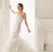 Платье «русалка», его еще называют «рыбьим хвостом» или «рыбкой» - узкое, сверху и до колена облегающее фигуру. От колена юбка расклешена. Еще в викторианскую эпоху носили платья, расширяющиеся к низу, переходящие в шлейф. С тех пор мода на фасон не проходила. Звезды кино стали выходить в свет, демонстрируя шикарные формы в облегающей «рыбке». Такой фасон платья всегда имеет длину до пола. Свадебное платье имеет шлейф, именно поэтому такие модели часто можно увидеть на формальных мероприятиях и красных дорожках....